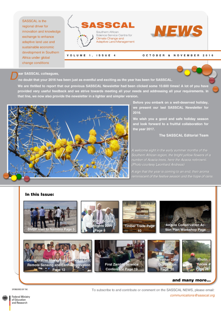 The December 2016 SASSCAL Newsletter is also available for download as PDF: SASSCAL Newsletter December 2016