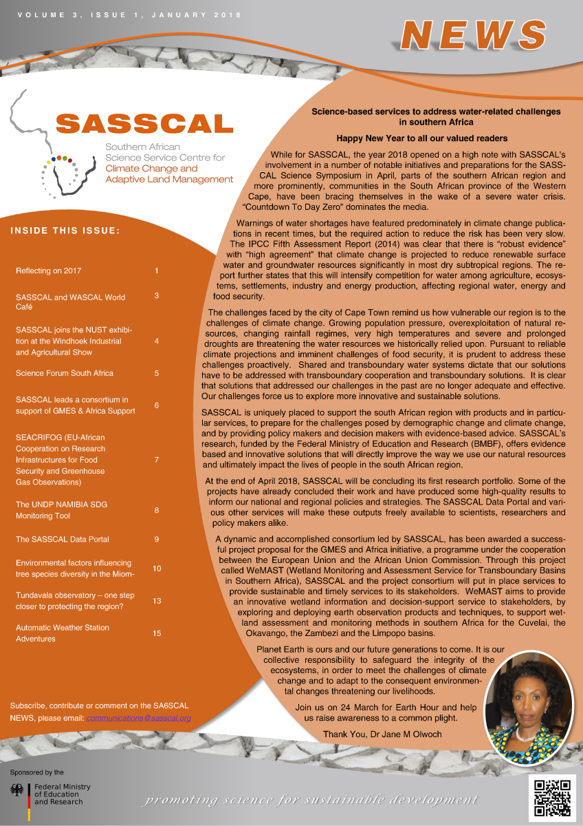 The January 2018 SASSCAL Newsletter is also available for download as PDF: SASSCAL Newsletter January 2018