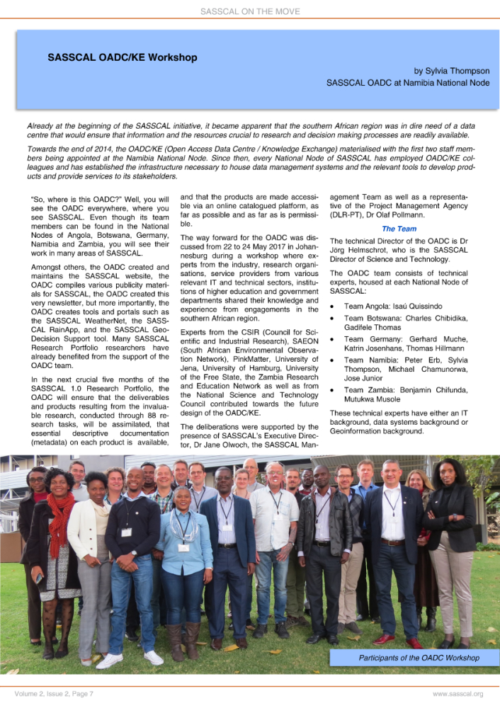 The June 2017 SASSCAL Newsletter is also available for download as PDF: SASSCAL Newsletter June 2017