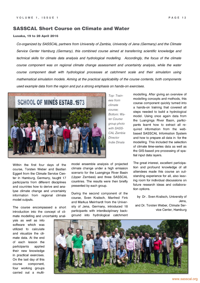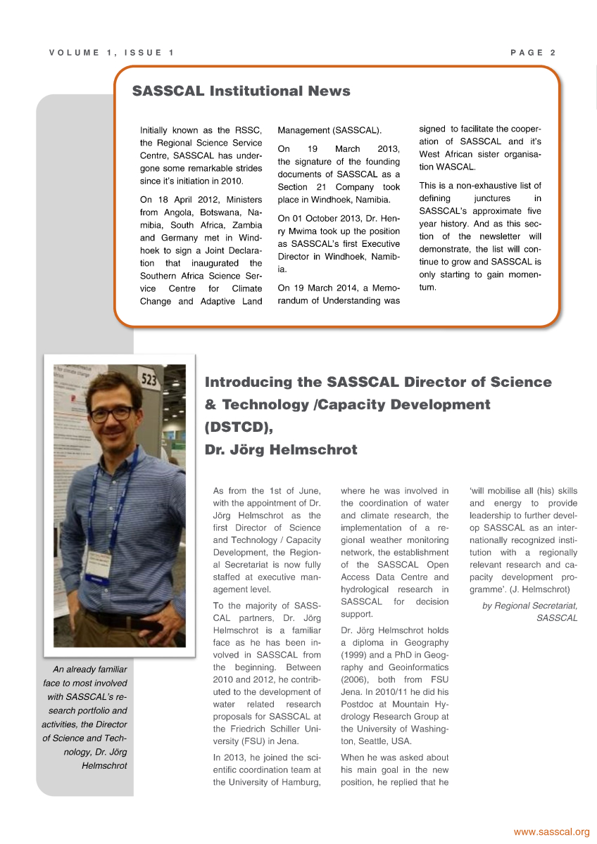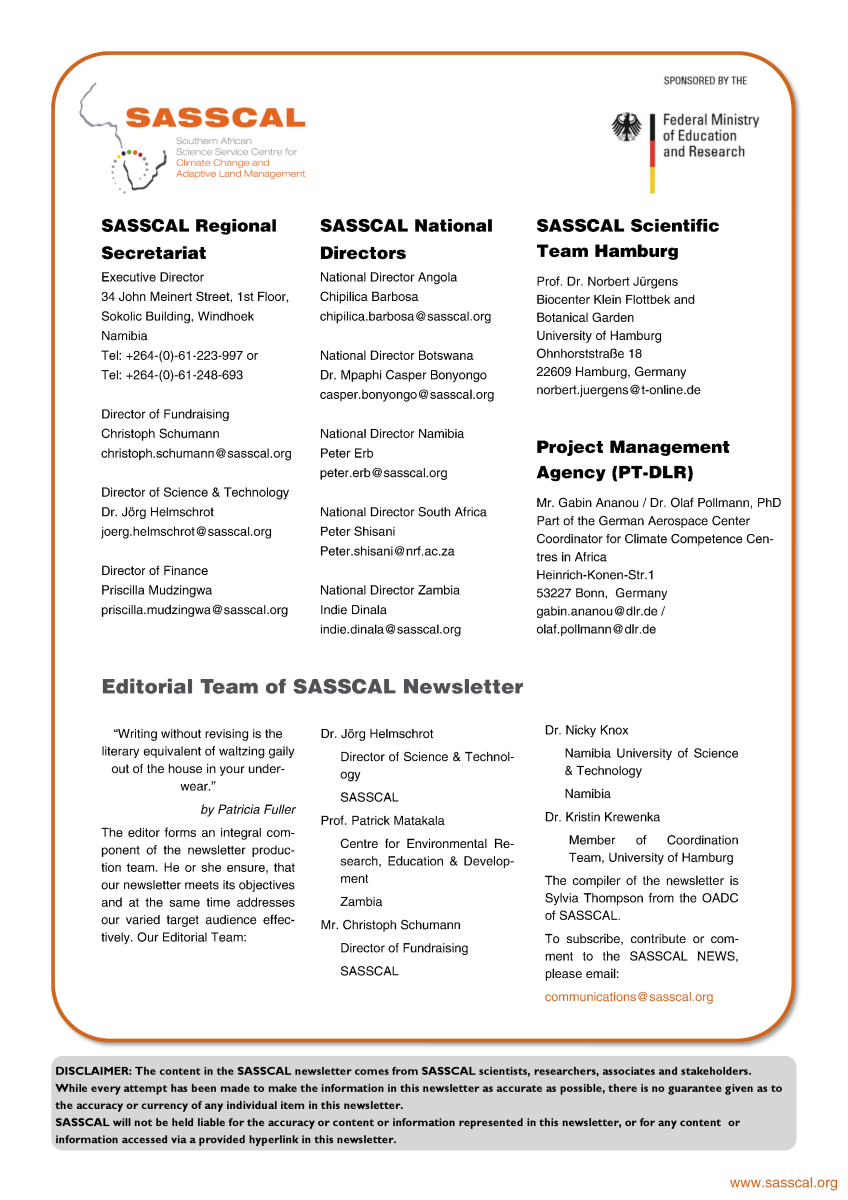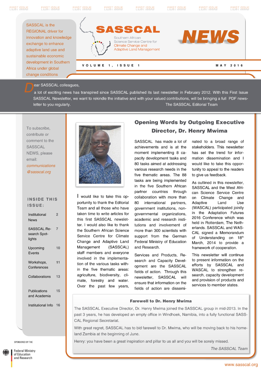 The May 2016 SASSCAL Newsletter is also available for download as PDF: SASSCAL Newsletter May 2016