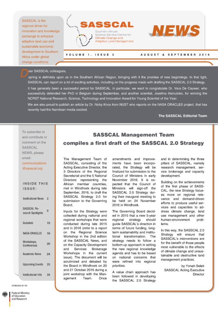 The September 2016 SASSCAL Newsletter is also available for download as PDF: SASSCAL Newsletter September 2016